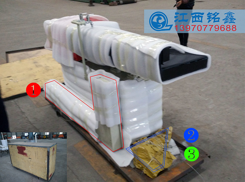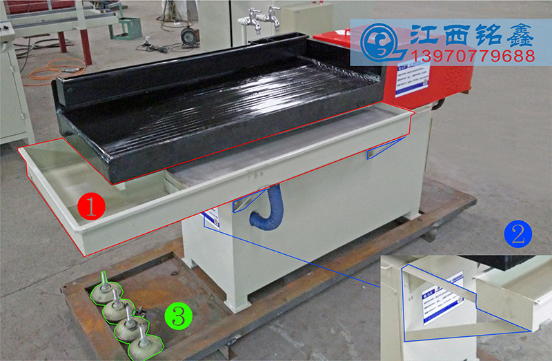 1.設(shè)備出廠已裝配調(diào)試好、為了便于包裝已把以下幾項(xiàng)配件拆解分裝、①接礦槽、②接礦槽支撐件、③防震墊腳。(圖1)(圖2)