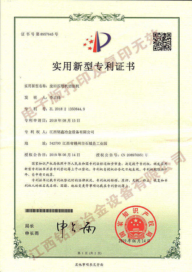 廢舊壓縮機切割機-ZL201821350844.9