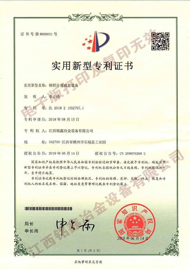 銅鋁分離成套設備-ZL201821352797.1